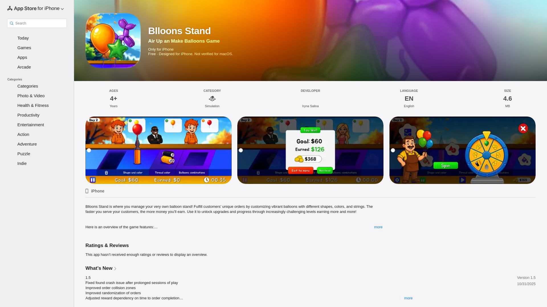 A Concise Overview of the scan result of url https://apps.apple.com/us/app/blloons-stand/id6748033136